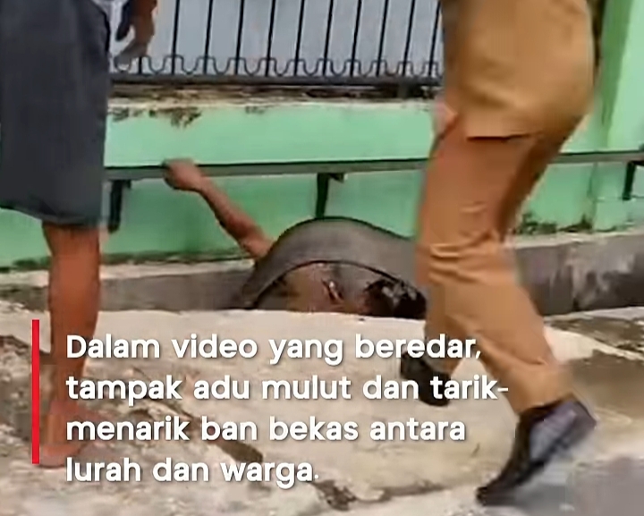 Momen dramatis itu terekam dalam video dan viral di media sosial. Dalam rekaman terlihat sang lurah tiba-tiba didorong hingga tercebur ke dalam parit ketika tengah memimpin pembersihan jalan dari polisi tidur (speed bump) ilegal dan tumpukan tanah yang mengganggu pengguna jalan.