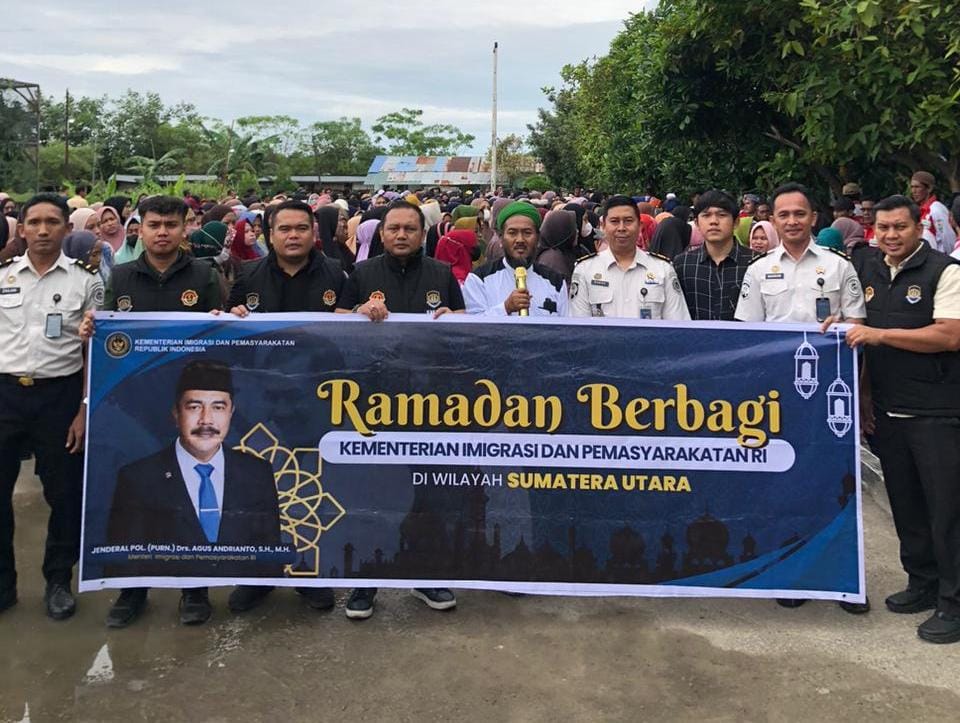 DELI SERDANG, iNewsMedan.id – Semangat berbagi di bulan suci Ramadan benar-benar diimplementasikan oleh jajaran Kementerian Imigrasi dan Pemasyarakatan RI. Melalui inisiatif langsung Menteri Imigrasi dan Pemasyarakatan RI, Jenderal Pol. (Purn.) Drs. Agus Andrianto, S.H., M.H., kegiatan bakti sosial bertajuk "Ramadan Berbagi Menebar Kebaikan, Menggapai Keberkahan" sukses digelar di Pondok Pesantren Mazilah, Deli Serdang, Minggu (15/3/2026).